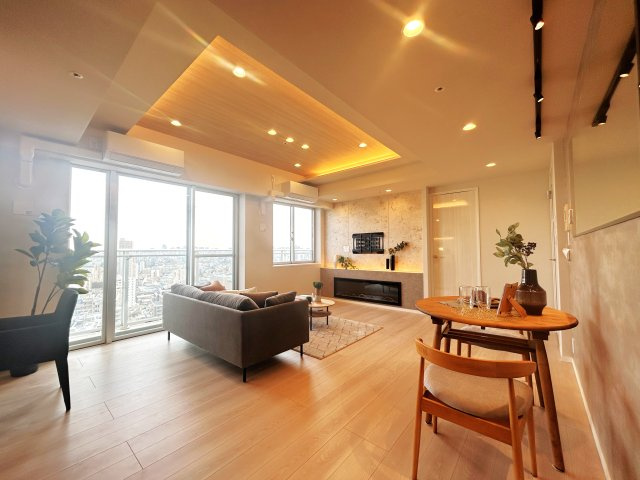 【居間・リビング】リビングは家族が1番くつろげる癒しの空間、家族が集い憩うリビングスペースはナチュラルカラーの明るい心地良い空間に仕上がりました。